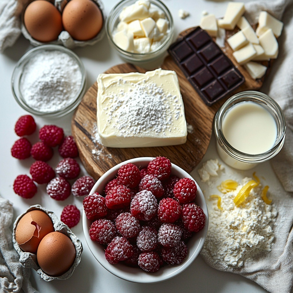 This recipe calls for straightforward, kitchen-friendly ingredients that each play a vital role in the cake’s texture and flavor. From the fluffiness imparted by buttermilk to the brightness of fresh raspberries and the rich sweetness of white chocolate, every component is carefully chosen to create a harmonious taste experience.