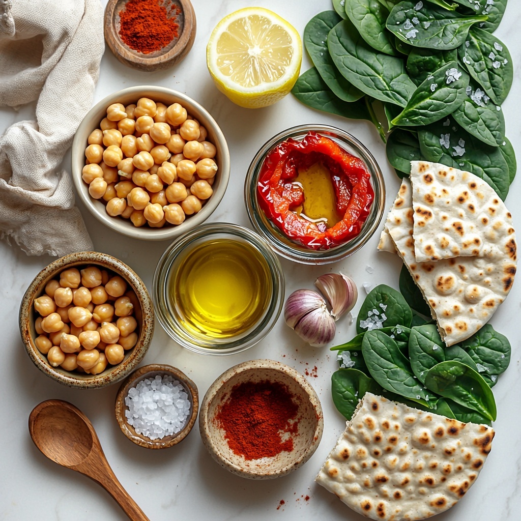 These ingredients are straightforward yet essential, creating a harmony of flavor, texture, and color that really makes this recipe shine. Each component plays its part, from the creamy chickpeas to the punchy lemon juice and the fresh greens and roasted red peppers that bring those beautiful hues.