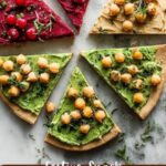 Try arranging the red and green hummus side by side on a rustic wooden board, surrounded by the pita trees standing upright. You can even sprinkle some toasted pine nuts or pumpkin seeds over the dips for added texture and visual interest. It’s a colorful centerpiece that invites guests to dig in with delight.
