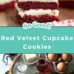 Delicious red velvet cupcake cookies topped with creamy homemade cream cheese frosting and decorated with heart sprinkles. These soft, fluffy cookies combine the delightful flavors of classic red velvet cake in a cookie form, perfect for celebrations or a sweet treat anytime.