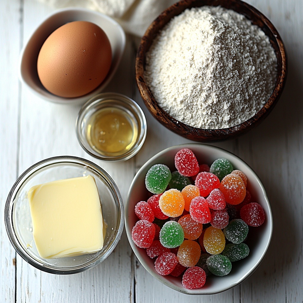 These ingredients are surprisingly simple yet essential for capturing the perfect balance of flavor, texture, and color in this Retro Christmas Gumdrop Cookies Recipe. Each component works in harmony to ensure your cookies are tender, aromatic, and full of festive sparkle.