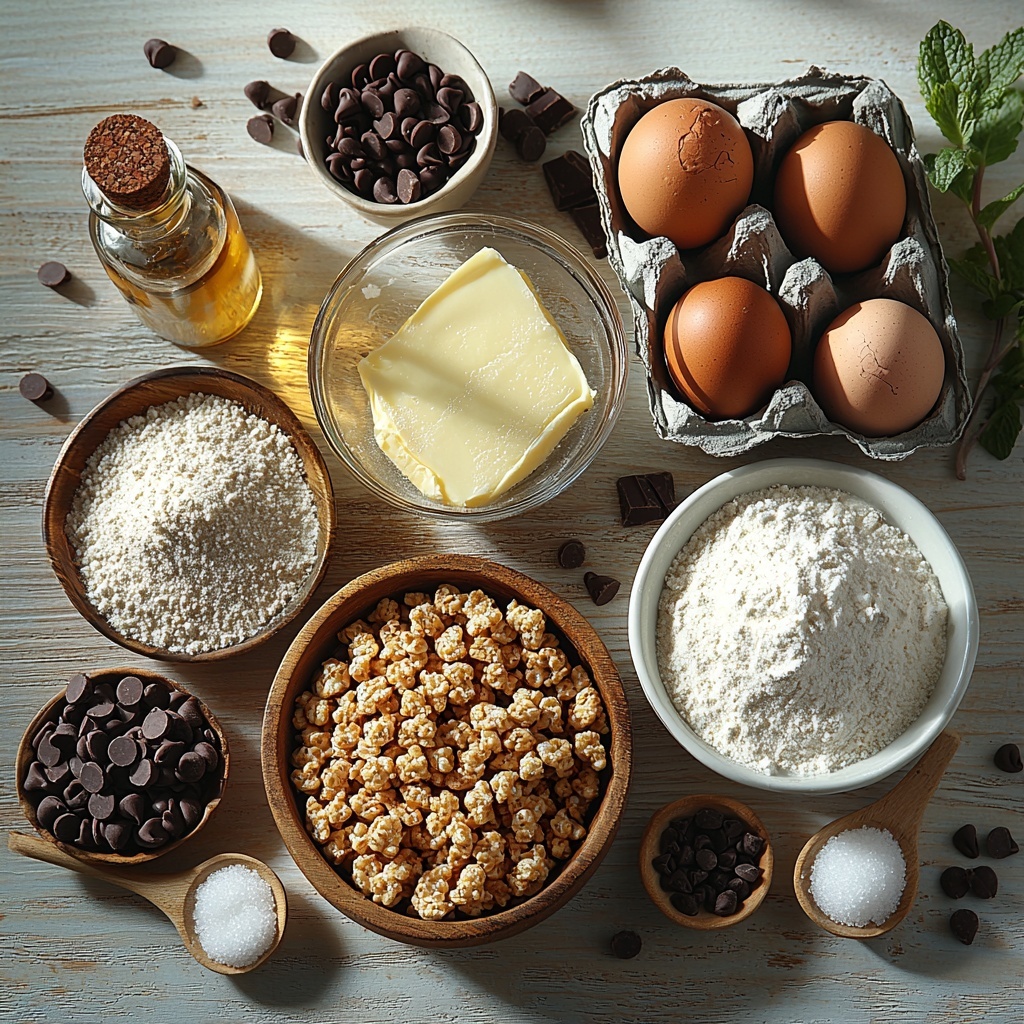 - Prepare the Dough: Preheat your oven to 350°F (175°C) and line a baking sheet with parchment paper to prevent sticking. In a large mixing bowl, cream together the softened butter, granulated sugar, and brown sugar until the mixture is light and fluffy, which usually takes about 3-4 minutes. Then, add the eggs one at a time, beating well after each addition to ensure thorough mixing. Stir in the vanilla extract to add flavor. In a separate bowl, whisk together the all-purpose flour, baking soda, and salt. Gradually incorporate the dry ingredients into the wet mixture, mixing just until combined to avoid overworking the dough. Finally, gently fold in the semi-sweet chocolate chips and Rice Krispies cereal carefully, so the cereal stays mostly intact, lending its characteristic crispiness.