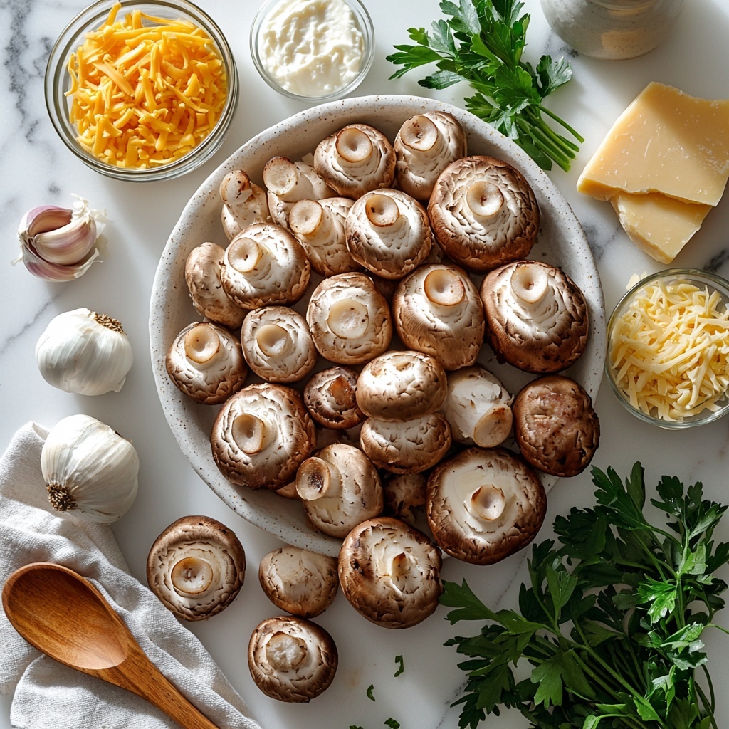 Gathering simple yet essential ingredients is the key to making these mushrooms irresistibly tasty. Each item plays its part, from juicy mushrooms providing that chewy base, to rich cheeses that create creamy indulgence, and spicy sausage adding a punch of flavor. Here’s what you’ll want on hand: