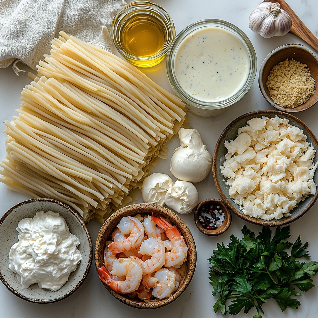 A few simple garnishes like a sprinkle of chopped fresh parsley or basil leaves add a lovely touch of green and brighten the dish visually and flavor-wise. A light drizzle of extra Alfredo sauce or a squeeze of lemon juice can also enhance the seafood’s natural flavors.