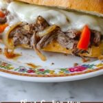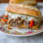 A delicious slow cooker Philly cheesesteak sandwich recipe featuring tender beef sirloin cooked with bell peppers, onions, and a flavorful sauce, topped with melted provolone cheese on a hoagie roll. Perfect for an easy, hands-off meal that bursts with classic Philly cheesesteak flavors.