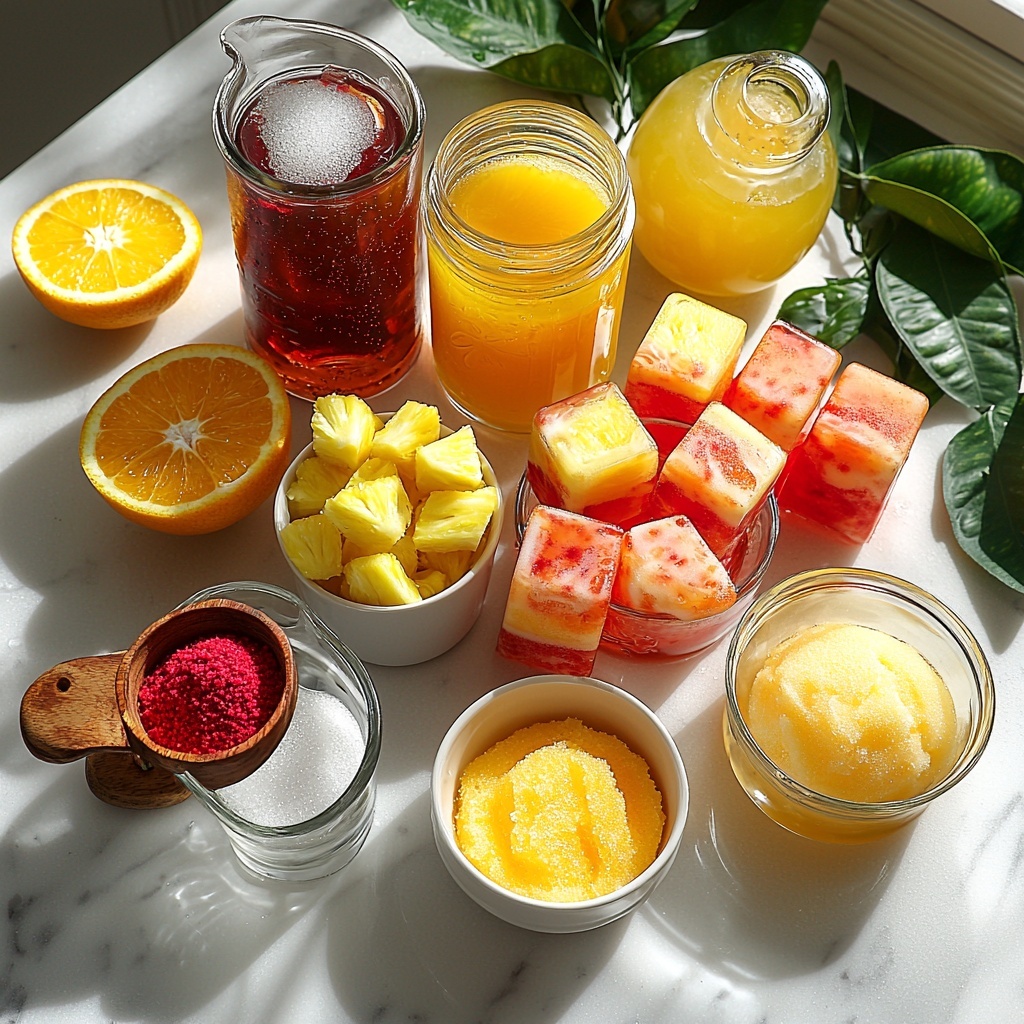 - 1 cup pineapple juice: Adds tropical undertones that blend beautifully with the other citrus flavors.