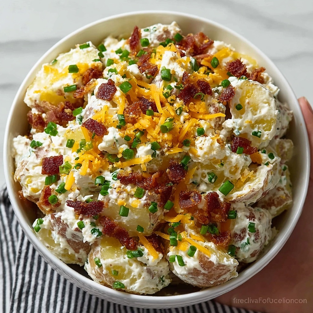 Cover your salad and refrigerate it for at least 30 minutes. This step isn’t just to chill the dish—it allows all those beautiful flavors from the bacon, onions, and herbs to mingle and deepen, making every forkful utterly irresistible. Before serving, feel free to garnish with a few extra chives for a pop of color and freshness.