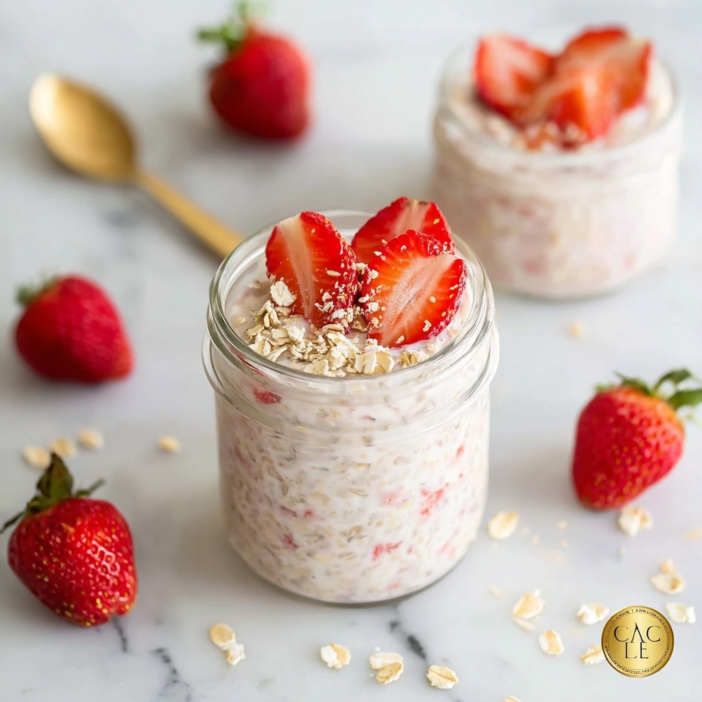 A simple and healthy recipe for Strawberry Overnight Oats that combines oats, chia seeds, yogurt, milk, and fresh strawberries. This make-ahead breakfast is quick to prepare, customizable with optional protein powder and sweeteners, and perfect for a nutritious morning meal.