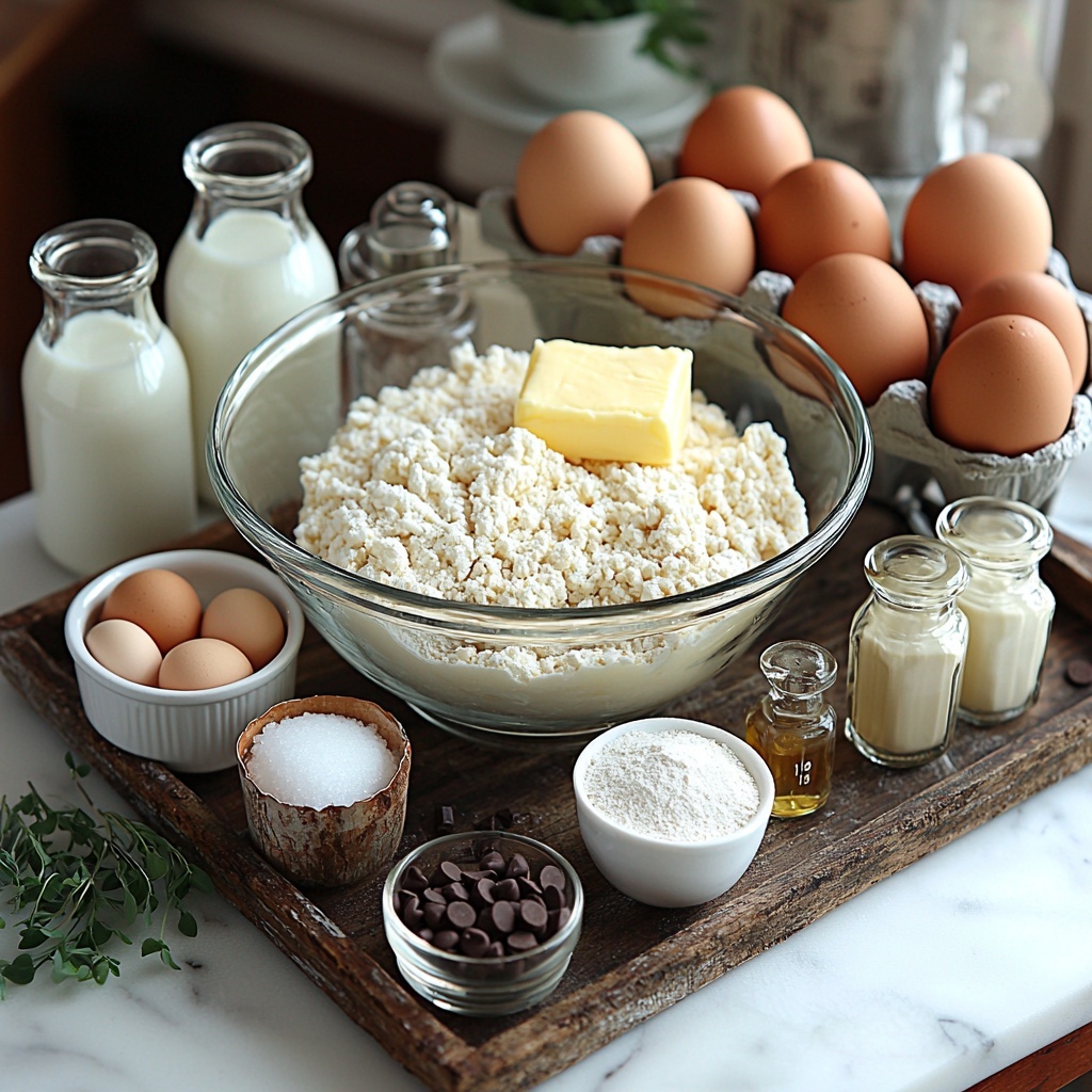 The magic of The BEST Chocolate Chip Pound Cake Recipe lies in its simple but thoughtfully chosen ingredients. Each component plays a vital role: from the creamy unsalted butter that ensures richness, to the buttermilk that keeps every bite tender, and of course, the mini semi-sweet chocolate chips that provide delightful pockets of sweetness throughout.