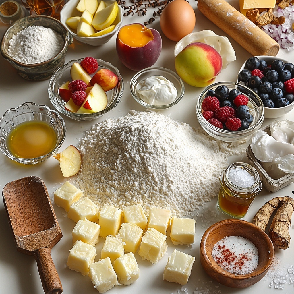 - Sweet filling ingredients (choose one): Fresh apples, mixed berries, or peaches paired with sugar, lemon juice, and cornstarch for thick, luscious fruit fillings.