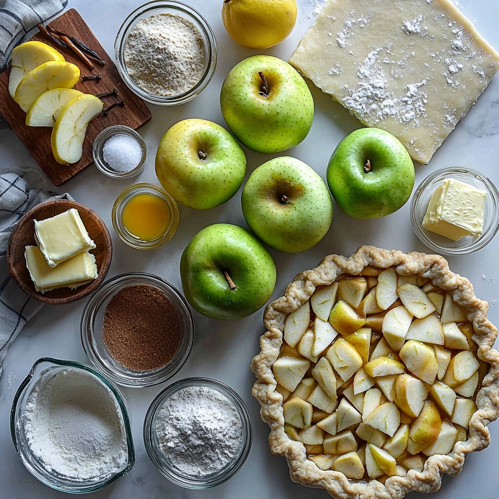 This recipe relies on straightforward, pantry-friendly ingredients that come together beautifully to create a pie that’s bursting with flavor and just the right texture. Each plays an essential role, from the tartness of the apples to the sweetness and spice that make every slice irresistible.