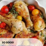 Once cooked, carefully transfer the chicken legs to a serving platter and scatter the tender tomatoes and roasted garlic around them. Don’t forget to drizzle some of the fragrant olive oil from the pan over the top — it’s packed with all the savory notes you’ve lovingly developed during cooking. The presentation is rustic yet elegant, making this dish as satisfying to look at as it is to eat.