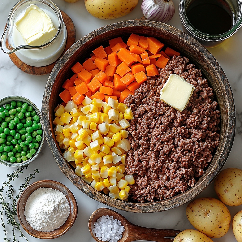 • 2 lbs russet potatoes: The hero of the topping, offering creaminess and a perfect golden crust when baked.