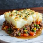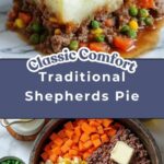 This Traditional Shepherd’s Pie is a comforting, classic dish featuring a savory ground lamb or beef filling layered under creamy mashed potatoes, then baked to golden perfection. A perfect hearty meal that blends tender vegetables, flavorful herbs, and a rich roux-thickened gravy, all crowned with fluffy mashed potatoes baked to a crisp finish.
