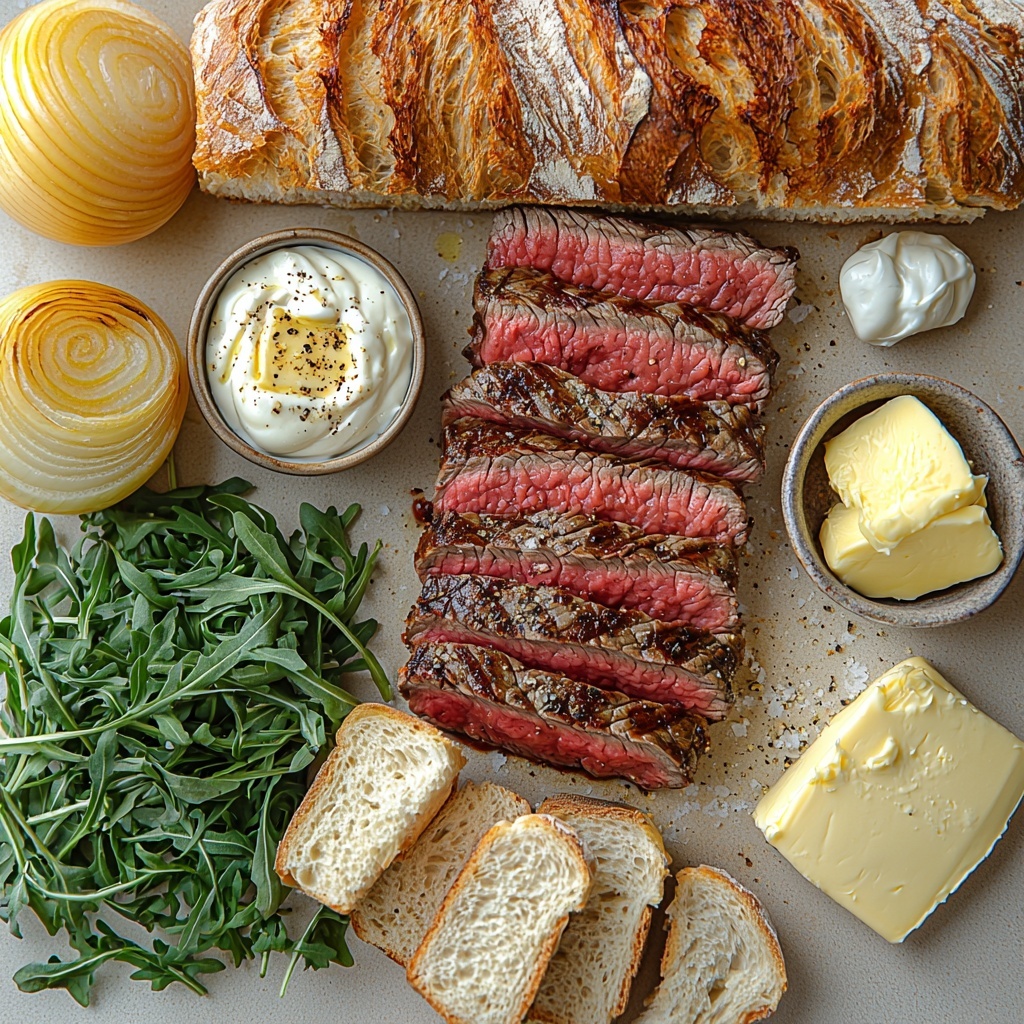 Getting ready to make this Ultimate Steak Sandwich with Caramelized Onions, Arugula, and Smoky Aioli Recipe is delightfully simple. Each ingredient plays a crucial role; from the tender ribeye which brings richness, to the caramelized onions adding a touch of sweetness, and the arugula for a fresh, peppery crunch. The smoky aioli? A game-changing sauce that elevates every bite.