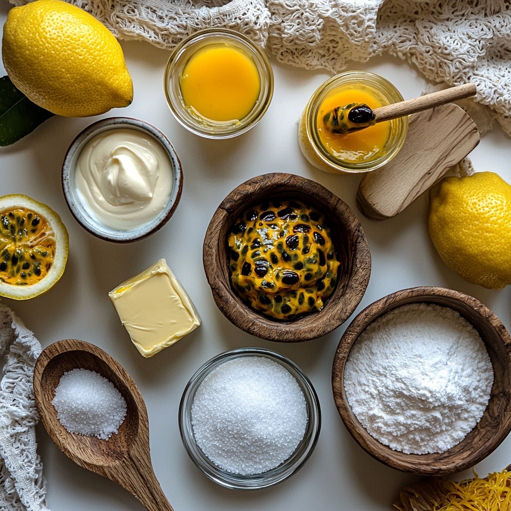 - Make Curd Base: Melt vegan butter in a saucepan over medium heat. Add lemon juice, passion fruit pulp, caster sugar, and lemon zest; simmer for 5 minutes.