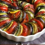 Vegetable Tian is a beautifully layered, baked French dish featuring thinly sliced zucchini, yellow squash, eggplant, and tomatoes. Sautéed garlic and fresh thyme enhance the flavors while olive oil adds richness. Baked to tender perfection, this colorful and healthy recipe serves as a perfect side or vegetarian main dish.